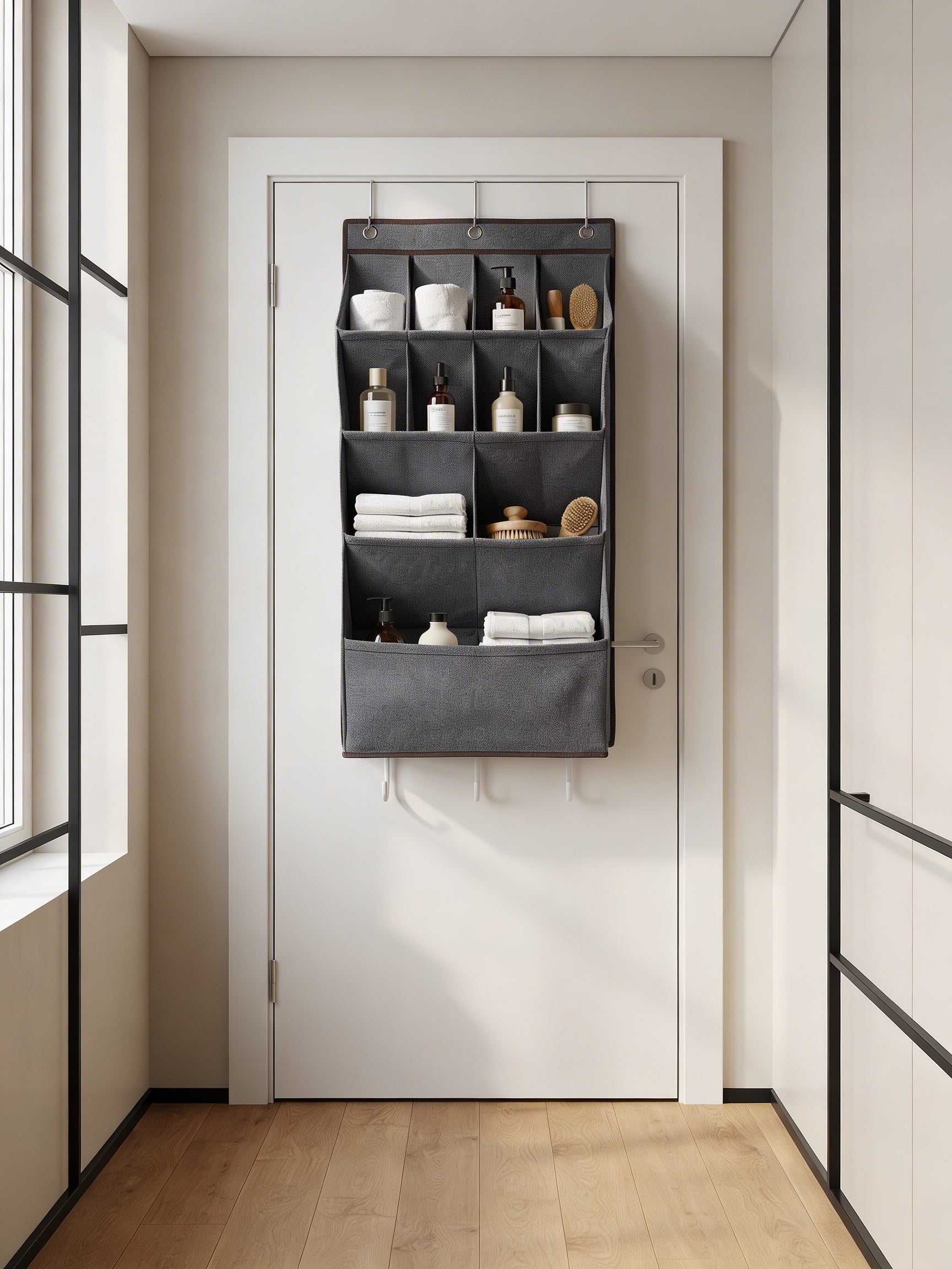 Avec ses 11 compartiments, ce rangement derrière porte s’adapte à de nombreux usages : organiser chaussures, accessoires, foulards ou produits de salle de bain. Chaque poche a été pensée pour optimiser l’espace tout en gardant un accès facile au quotidien.